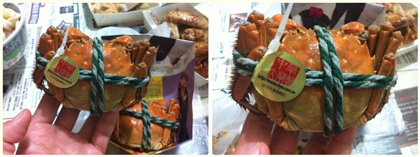 只不過這大閘蟹不知道從哪弄來,已經煮熟,還冰過了!